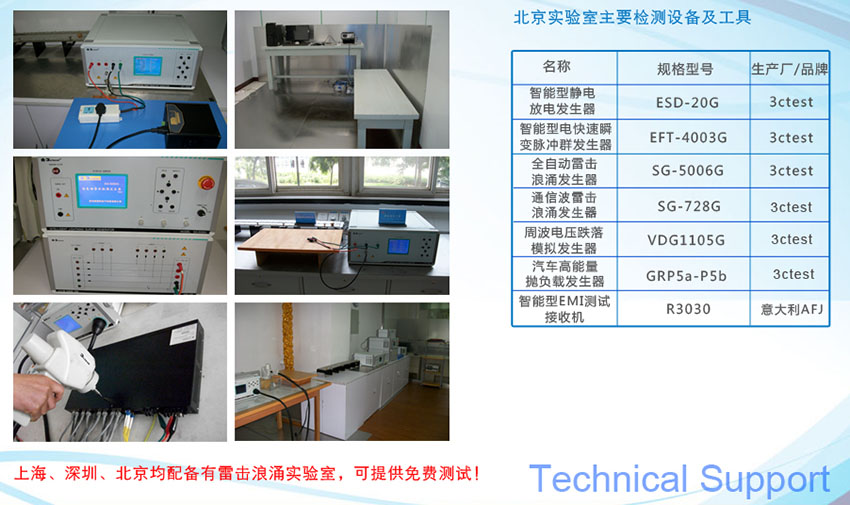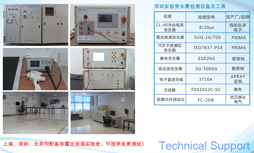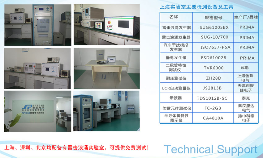 槟致电子坚持“稳而精”的产品理念,致力于把最前沿、最优质的器件提供给广大客户。公司在深圳有专门的测试实验室,可以为客户提供静电、浪涌(10/700、1.2/50&8/20、8/20等)、雷击、ISO7637-5a等测试。除上述硬件设备外,实验室还配备有专门的FAE为客户的测试提供指导并对客户的问题点提出改进意见。